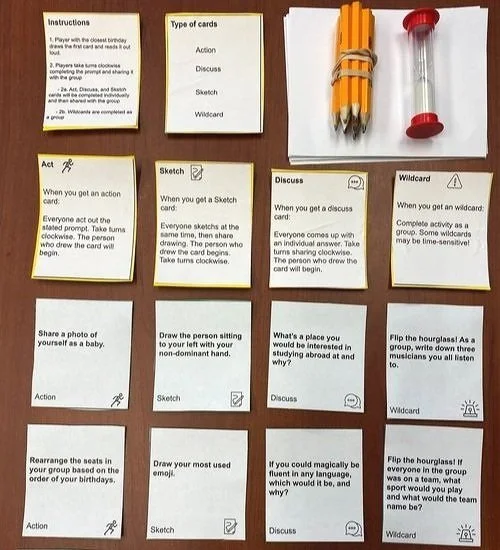 Ultimately, an in-class card game to get students interacting and getting to know each other in class was our favorite idea. Here’s why: