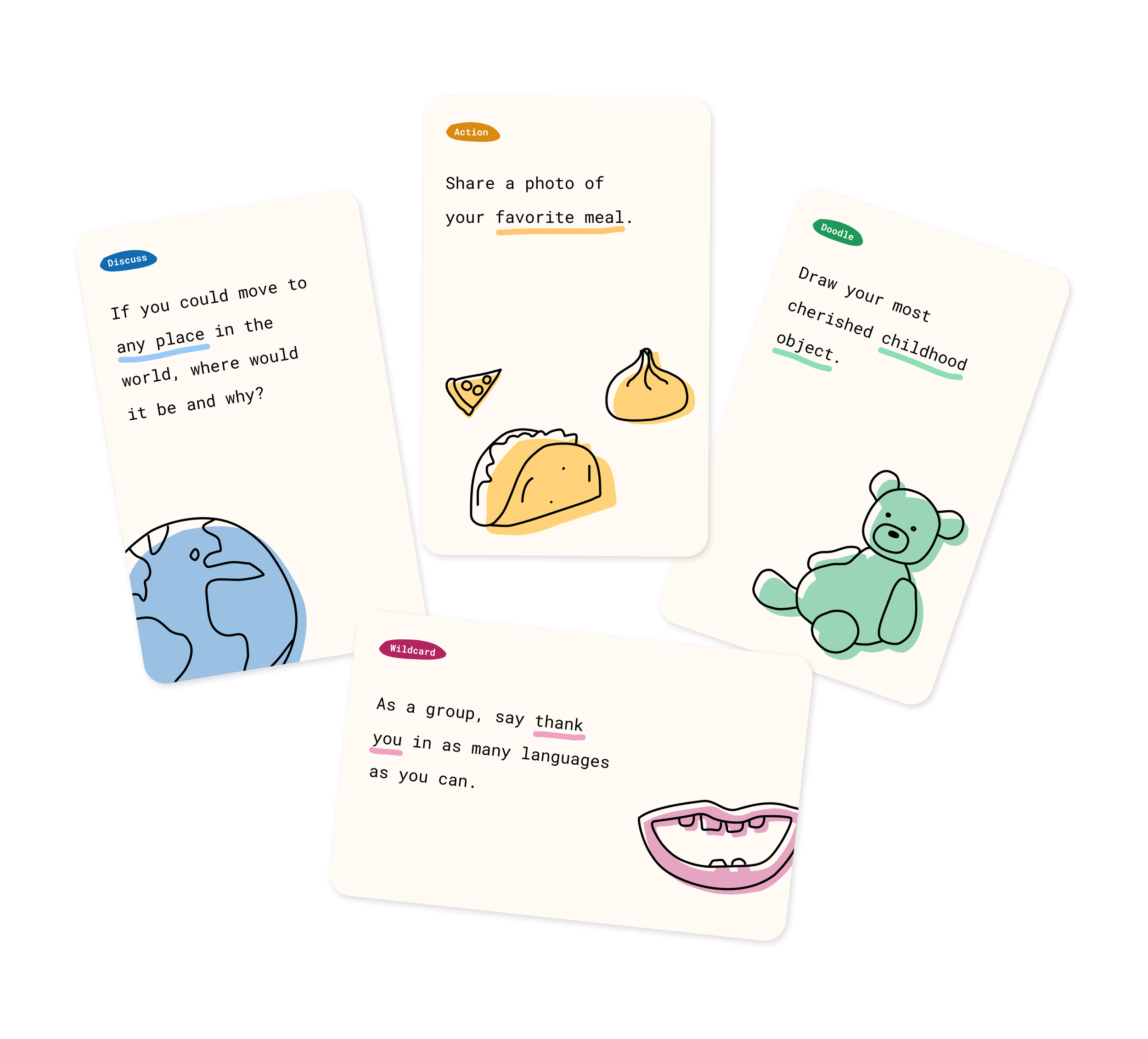 A prompt-based card game designed to foster genuine connections and cultural sharing between students at international high schools.
