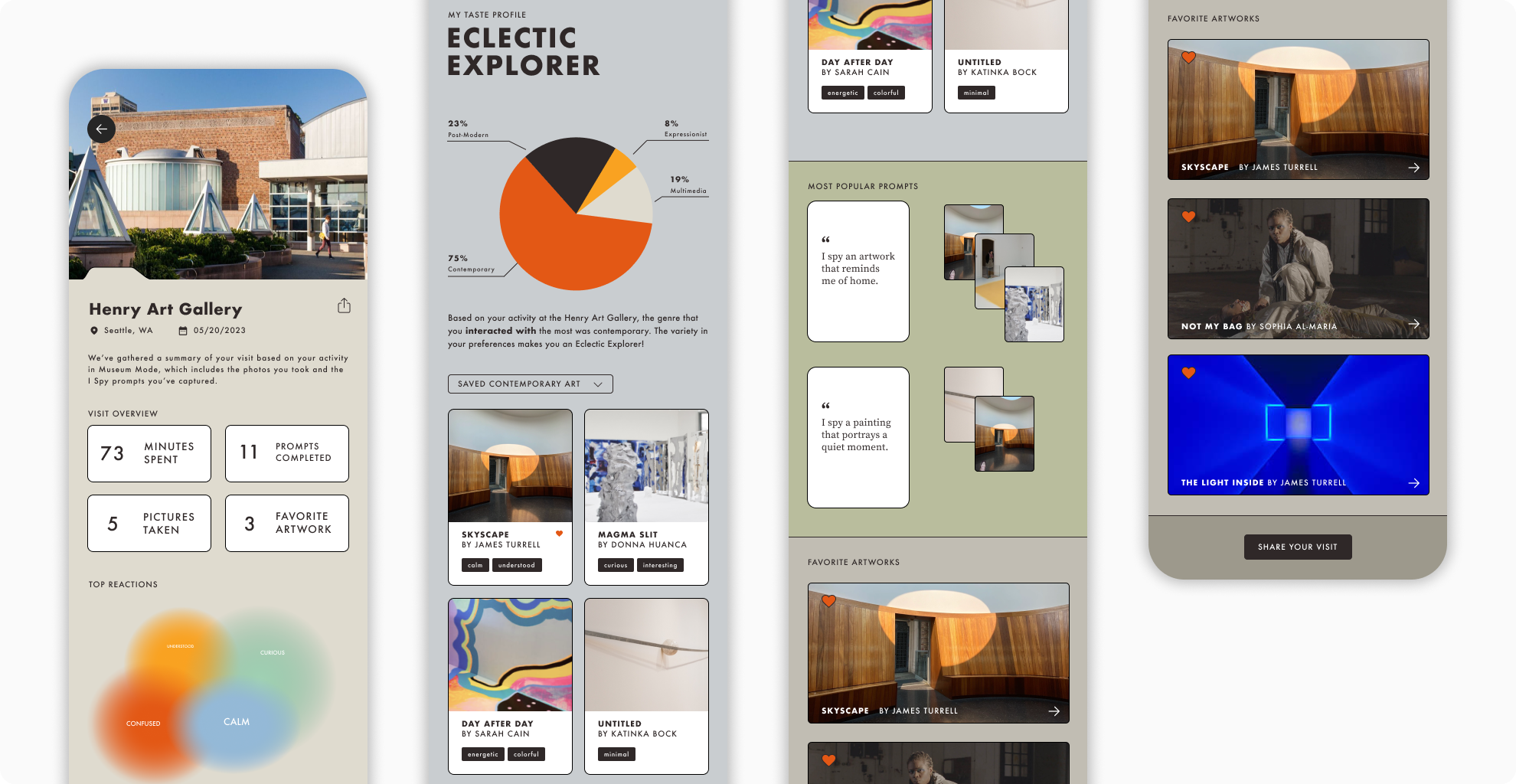 A visual breakdown of taste including by art movement, reaction clouds, and saved prompts and images provides users with unique memorabilia for their visit.